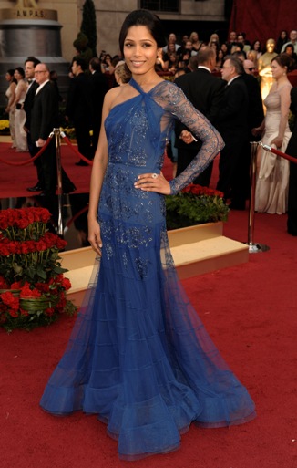 芙蕾達(dá)•平托(Freida Pinto):今年憑著大熱電影終于在世界各大場(chǎng)子露面的印度姑娘今天穿得非常點(diǎn)題:貧民、暴發(fā)、“寶”氣。