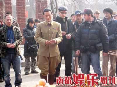 高群書的電影處女作《東京審判》曾獲得了廣泛的好評(píng),而在此之前他曾拍攝了大量的刑偵劇,其中最成功最有名的就是孫紅雷主演的《征服》。記者從劇組的拍攝通告上發(fā)現(xiàn)正月十六這一天拍攝的是王志文審訊女刺客的戲,而扮演女刺客的是《征服》的女主演劉威葳,去年劉威葳曾主演了王小帥的影片《左右》。兩年多前《征服》火爆熒屏的時(shí)候,就有圈內(nèi)人士告訴記者,劉威葳就是導(dǎo)演高群書的女友,兩人已相戀多年,早在高群書的那部主要由非職業(yè)人員出演的系列劇《命案十三宗》中劉威葳就出演過其中的一集。記者在片場(chǎng)看到劉威葳梳著三十年代流行的女性的“雞窩”發(fā)型,穿著一件破爛的染著“血跡”的裙子,據(jù)一位知情人士向記者透露,劉威葳扮演的女刺客雖然戲份不多,但很重要,影片的一開場(chǎng)就是她刺殺日本要員的重頭戲,因?yàn)樗?fù)傷被俘,才意外使日軍懷疑內(nèi)部有間諜,從而展開調(diào)查。