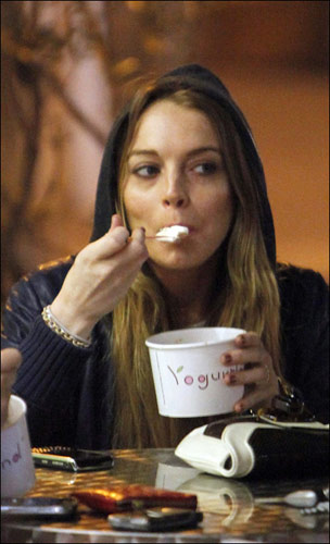 林賽·羅韓吃冰激淋 穿連帽衫俏皮可愛(圖)(3)——中新網