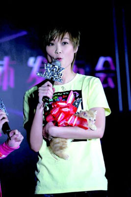作為天娛掌門人,龍丹妮送上的禮物也最特別——一只剛出生不久的小貓咪。這個淘氣的小家伙長相酷似春春最愛的卡通角色加菲貓,李宇春當(dāng)場為它取名“加菲”,還宣布要為它找一只“歐弟”。