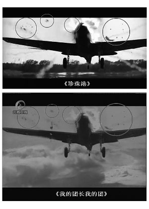 《團(tuán)長》前兩集中描繪孟煩了、迷龍等川軍團(tuán)成員乘坐運輸機(jī)前往緬甸時,遭遇日軍襲擊而墜機(jī)的情節(jié),首日播出之后,便有眼尖的觀眾發(fā)現(xiàn)空中飛行的鏡頭和墜機(jī)的鏡頭和《珍珠港》相似。昨日,有觀眾貼出了全部的比較圖,其中十余幀畫面和《珍珠港》如出一轍,甚至連駕駛艙的構(gòu)造和艙內(nèi)細(xì)節(jié)都是一模一樣。觀眾紛紛質(zhì)疑《團(tuán)長》從電影中直接截取了相關(guān)鏡頭。