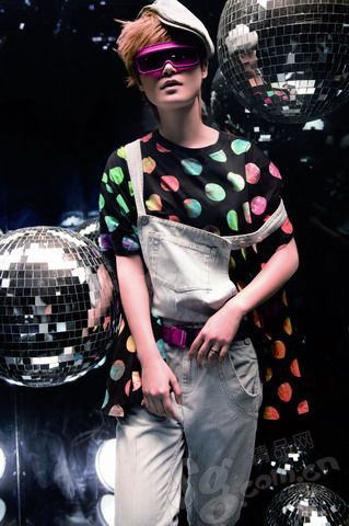 復(fù)古的條紋西服借鑒了Tuxdo的元素,像踏著鼓點、漫不經(jīng)心的爵士舞伶;不規(guī)則的圓點襯衫搭配金屬太陽鏡,轉(zhuǎn)眼間搖身一變成了Disco舞場里的搶眼明星;簡單的T恤與緊質(zhì)的運動褲,則仿佛小巷里熱愛復(fù)古舞步的搖擺小青年。