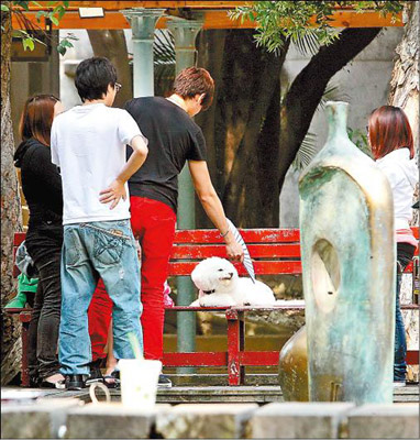 Jolin在片場(chǎng)認(rèn)真演出,她的狗兒子“屋虎”也有專人照顧,坐在木椅上還有人為牠扇風(fēng)解熱,Jolin一有空也不忘關(guān)心狗兒子,坐在木椅上逗弄愛(ài)犬。