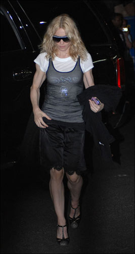 麥當(dāng)娜每次出現(xiàn)都一定成為我們目光追逐點,因為發(fā)生在麥姐身上的人和物永遠(yuǎn)都是那么標(biāo)新立異。不是和22歲的年輕男模戀愛,就是穿了雷人的超級學(xué)生妹套裝,這次又是什么呢,這次是很普通的鏤空黑色網(wǎng)眼外衣里面搭配了白色短袖,下身則是穿了到膝蓋的短褲,高跟鞋,很普通的裝扮,但是麥姐就是能穿出不同,這次的不同就是那身無比發(fā)達(dá)可以媲美是史泰龍的肌肉了,看看那小腿,胳膊上的肌肉,小編突然想起了機(jī)械戰(zhàn)警……