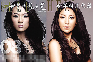 洪晃博客里更新了這期雜志封面,她稱,“開選題會的時候就走偏了,不知不覺就朝山寨去了……所以趁著山寨還不犯法的時候,我們這期狠狠地過了一把癮,把同行的三巨頭(《VOGUE》,《ELLE》,《BAZZAR》)給山寨了一把。三個封面女郎都是由楊二車娜姆友情出場。”