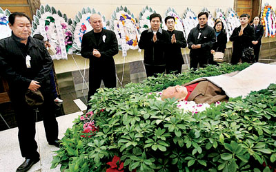 由于前來(lái)祭奠的群眾和媒體太多,告別廳門口一度被堵了個(gè)水泄不通。