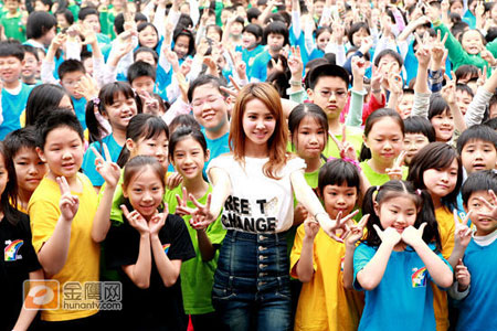 小朋友見(jiàn)到偶像到來(lái),非常興奮,就連家長(zhǎng)和老師也不分老小忙著拿起相機(jī)拍照,全校為之瘋狂,讓蔡依林在活動(dòng)結(jié)束后,差點(diǎn)離不開(kāi)校園。