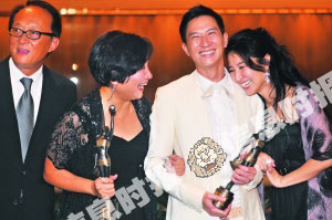 努力20年首獲影帝的張家輝,前晚表現(xiàn)風(fēng)騷,愛妻關(guān)詠荷一直緊跟其后,一臉崇拜,兩人還大方在媒體面前上演親吻秀。對(duì)于丈夫獲獎(jiǎng),關(guān)詠荷很是感慨,“他為這一天付出了多少,只有我才知道!