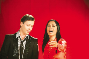 韋唯與維塔斯在錄音棚初次見面氣氛就相當(dāng)融洽,盡管兩人語(yǔ)言不通,但維塔斯施展的耍寶逗樂功夫讓韋唯忍俊不禁。兩人面對(duì)鏡頭進(jìn)入狀態(tài)很快,尤其是在對(duì)唱時(shí)更加自然親近。記者 俞亮鑫