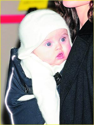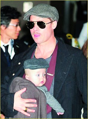 皮特和茱莉帶著6名子女到東京,分別宣傳兩人的新片《本杰明·巴頓奇事》和《換子疑云》,全家在機場獲禮遇快速完成通關(guān)。皮特胸前抱著諾克斯,左手牽著非洲裔養(yǎng)女扎哈拉,右手拉著越南養(yǎng)子帕克斯,率先入境,現(xiàn)場200多名“粉絲”瞬間陷入瘋狂,尖叫聲不斷。茱莉則是懷抱維維恩,牽著希洛與馬多克斯緊跟在后,她頻向左方護欄后的“粉絲”微笑致意,希洛看了有樣學(xué)樣,也轉(zhuǎn)身好奇地觀望群眾。馬多克斯與扎哈拉顯得心不在焉,倒是排行老二的帕克斯,似乎還不太習(xí)慣鏡頭與人群,他最后一個下飛機,入境時頻頻舉手遮眼,甚至以衣服包頭閃避鎂光燈。