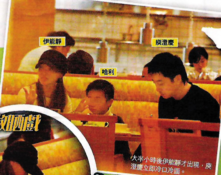 庾澄慶和伊能靜于新春期間帶上7歲的兒子哈利(庾翰睿)到北海道旅游。根據(jù)最新一期香港雜志報(bào)道,六日的旅程里伊能靜狂打“親情牌”,希望與丈夫“箍煲(復(fù)合)”,但庾澄慶冷漠對(duì)待,一有機(jī)會(huì),他便離開老婆留在酒店休息。