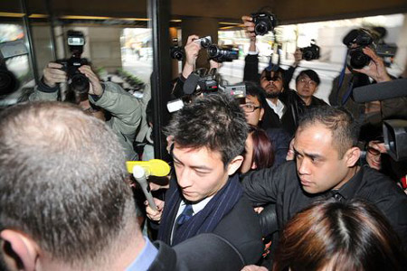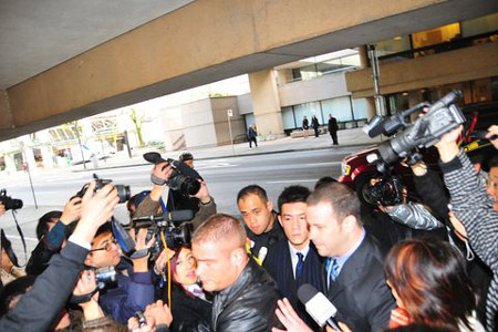 陳冠希在經(jīng)理人陪同下,抵達(dá)溫哥華高等法院應(yīng)訊,經(jīng)理人表示,原先法庭考慮陳冠希的安全,計劃安排他在停車場直接進(jìn)入法庭,不過經(jīng)與陳冠希商量后,決定由正門進(jìn)入,以顯示陳對此宗案件坦然面對。