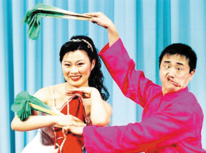 作為趙本山弟子中唯一一個(gè)從小學(xué)習(xí)二人轉(zhuǎn)的專(zhuān)業(yè)演員,閆光明不僅嗓子好、武功好,戲路也寬,在“首屆趙本山杯二人轉(zhuǎn)大獎(jiǎng)賽”中曾獲表演銀獎(jiǎng)。閆光明非?炭,雖然年齡不小了,但現(xiàn)在還是遼寧大學(xué)本山藝術(shù)學(xué)院民族藝術(shù)表演專(zhuān)業(yè)的大四學(xué)生。去年的全國(guó)大學(xué)生藝術(shù)節(jié)上,閆光明和妻子趙海燕以一段新編二人轉(zhuǎn)《梁山伯與祝英臺(tái)》獲得一等獎(jiǎng)。能有今天的成績(jī),閆光明自己也“沒(méi)想到”:“我生在二人轉(zhuǎn)世家,能有今天的成績(jī)說(shuō)明這么多年的努力沒(méi)白費(fèi)!彼膊煌兄x師傅趙本山,“師傅讓二人轉(zhuǎn)越來(lái)越紅火,我得繼續(xù)努力,把我熱愛(ài)的民間藝術(shù)發(fā)揚(yáng)光大!蔽枧_(tái)上擅長(zhǎng)模仿趙本山的閆光明說(shuō),“我們對(duì)天津觀眾很熟悉,因?yàn)樘旖蛴袆⒗细笪枧_(tái),我認(rèn)識(shí)了很多天津朋友。這次來(lái)天津演出,希望大家一樣支持我!