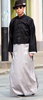 昨天《建國(guó)大業(yè)》的拍攝場(chǎng)地就在車墩影視基地的 “南京路”,既然拍的是上海戲,當(dāng)時(shí)上海灘的大佬杜月笙就自然成了重要人物。昨天,馮小剛的“任務(wù)”就是坐在黃包車上,后面跟著一幫人馬,在“南京路”上拉風(fēng)地走過去。馮小剛戴著帽子,鼻梁上架著圓圓的老式墨鏡,拎著一根文明棍,他的黃包車,也被做成了鍍金的。黃包車后面,跟著20多個(gè)黑衣保鏢,派頭十足。這個(gè)造型,讓人不免想起了《功夫》中馮小剛客串的鱷魚幫老大。