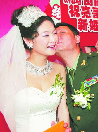 張國立等明星送上真誠的祝福;羌族村民獻(xiàn)上祝酒歌;鐵桿影迷前來道賀……昨日中午,因“毛子”“三德子”形象紅遍全國的川籍著名演員趙亮在成都大擺喜宴,迎娶新娘胡敬。擺足了87桌喜酒的婚禮現(xiàn)場熱鬧非凡。一對新人在互贈(zèng)戒指的環(huán)節(jié)中眼眶紅紅,趙亮更發(fā)表愛的宣言:“這下我們雙方就套住了,永遠(yuǎn)套牢,永不分開!”