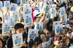 喜歡羅京的觀眾在網(wǎng)上自稱“菠蘿團”,“菠蘿團”用200朵白玫瑰制成的花牌和紀念冊表達自己的哀思,“主要是由羅老師的照片和菠蘿們的祝福組合而成。這個紀念冊的制作費是300多元,但制作方看我們是送給羅老師的,最后決定免費為我們制作。我們還做了一個心形花牌,由200朵白玫瑰和羅老師的照片組成。白玫瑰的花語是尊敬”,紀念冊已經(jīng)送到羅京家屬手中。昨天現(xiàn)場“菠蘿”們統(tǒng)一手系黃絲帶,從凌晨5點就有人開車從天津趕到八寶山,“菠蘿”里有老人、孕婦,也有剛高考完的學生。這些天來,喜愛羅京的眾多粉絲自發(fā)在網(wǎng)上悼念羅京。網(wǎng)上獻花、上香、寫悼文者眾多。羅京生前曾在一次晚會上唱過周杰倫的《千里之外》,有“菠蘿”模仿《千里之外》為羅京寫了一首《京哥走好》——“電腦剛打開,噩耗就傳來,實在太意外;偌大中央臺,數(shù)你最有才,偏偏患上癌;工作到現(xiàn)在,將近三十載,新聞你主宰……”記者 張艷