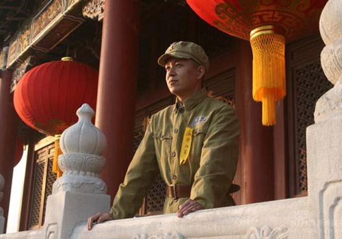 扎宮燈的“封建殘余”藺老爺可不普通,雖然是配角,舉手投足都是戲。不管是他抬頭望著拿空慈竹的老屋頂,還是感慨地看著天安門城墻上隨風(fēng)飄動的那些有生以來做得最大的紅燈籠,還是在開國大典時拿下帽子向天安門向毛主席深鞠一躬,都讓人心中泛起一種說不出的感覺,是去舊迎新?據(jù)葉導(dǎo)介紹,這位藺老爺就是著名的相聲表演藝術(shù)家田立禾。
