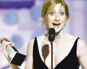 因?yàn)樵凇逗诘兰易濉分械谋憩F(xiàn)而獲獎(jiǎng)的伊迪·法爾科因?yàn)檠屎硌锥鵁o(wú)法說(shuō)話(huà)。她沒(méi)辦法感謝任何人;在困難的嘗試之后生生擠出了幾個(gè)表示感謝的字眼,然后盡最大的努力表現(xiàn)出自己的欣喜,走回自己的座位。