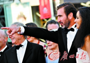 綽號(hào)是“國王”的前曼聯(lián)球星坎通納前日(18日)在一片球迷的歡呼聲中來到戛納,出席他出演的電影《尋找埃里克》的首映式。在首映式前的記者會(huì)上,坎通納的風(fēng)頭蓋過了英國導(dǎo)演肯·羅奇,成為記者提問的對(duì)象,電影記者會(huì)變成了一場球賽發(fā)布會(huì),“足球”占領(lǐng)了電影宮。