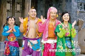 昨天新畫面公布的2分05秒“終極版《三槍拍案驚奇》預(yù)告片”中,前半部分有明顯的喜劇風(fēng)格:小沈陽(yáng)先是用東北話問:“怎么說呢?”接著是叉著腰、扭著頭,用《不差錢》中的腔調(diào)甩出一句話:“跑什么呢,你趕緊回來!”閆妮則依然是《武林外傳》中的派頭,還冒出了一句英文臺(tái)詞:“How much?(多少錢)”扮演捕快隊(duì)長(zhǎng)的趙本山也在預(yù)告片中出現(xiàn),一身盔甲,背上背了幾支箭,惡狠狠地問了一句:“麻子呢?”而小沈陽(yáng)在一個(gè)聲音問到他是不是買了把槍時(shí),說了句:“這個(gè)真的沒有。”立刻讓人想起他演的春晚小品《不差錢》。
