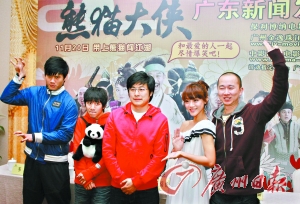 結(jié)束了北京首映禮之后,11月18日,《熊貓大俠》導演王岳倫帶著演員后舍男生、鄧家佳、李曉川抵達廣州宣傳。