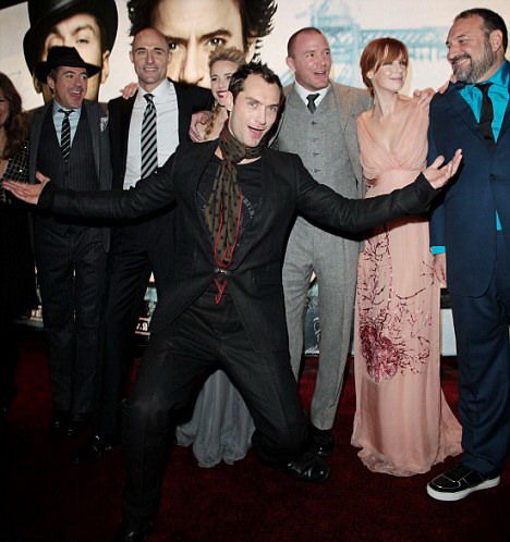 昨日倫敦天氣驟然轉(zhuǎn)冷。在導(dǎo)演蓋·里奇的帶領(lǐng)下,包括小羅伯特·唐尼、裘德·洛在內(nèi)的一眾演員冒雨踏上了紅地毯。唐尼一身福爾摩斯式的復(fù)古打扮,貌似直接從影片中走出來。以老式街燈裝扮的萊斯特廣場更襯托出維多利亞時代的氛圍。在開拍至今,這部新《福爾摩斯》一直爭議不斷。英國人不解:最具代表性的英國人物為什么會由美國鋼鐵俠扮演。而裘德·洛外形太精明、搶眼,與原著中笨手笨腳的華生大相徑庭。