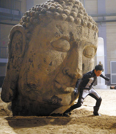 在《未來(lái)警察》中,劉德華化身為正義的未來(lái)警察,跟大S、范冰冰、徐嬌、樊少皇、賀軍翔共同上演了一出時(shí)空穿梭、正邪激戰(zhàn)的火爆好戲。片中有一幕,拍的是劉德華站在一尊兩米高的石佛之下,與樊少皇率領(lǐng)的改造人團(tuán)伙激烈打斗。據(jù)了解,一貫追求完美的劉德華當(dāng)時(shí)堅(jiān)持不用替身,結(jié)果意外發(fā)生了。雖然已事先備下保護(hù)措施,但在推動(dòng)佛像的過(guò)程中,這座千余斤的巨物卻突然失控,將劉德華壓在下面,F(xiàn)場(chǎng)工作人員大驚失色,一擁而上解救他,但畫(huà)面也因此穿幫。 (李麗)