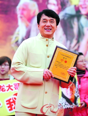 成龍大哥為了新片《大兵小將》做宣傳很賣力,廣州作為第三站,行程卻安排了三場發(fā)布會。還不包括流產(chǎn)的一場。為了迎接成龍,各主辦方都掐著時間搞活動,而成龍所到之處,粉絲的熱情讓空氣陡然熱起來。當(dāng)天,被授予廣東志愿者協(xié)會名譽(yù)會長的成龍將300張《大兵小將》電影票送給廣州亞運(yùn)會志愿者!