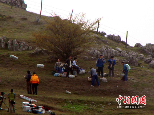 與在遠(yuǎn)安拍攝時(shí)不同,因?yàn)榘倮锘木皡^(qū)處于海拔1300米的山頂,交通不便,附近農(nóng)戶稀少,拍攝時(shí)除了景區(qū)工作人員,少了許多圍觀的群眾。記者26日上午下山時(shí),看見有不少知情的當(dāng)?shù)厝诉在開車往山頂?shù)木皡^(qū)趕去。