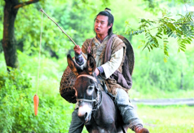 昨日記者探班的戲份是影片的開場(chǎng):小沈陽飾演的凡人小鞋匠騎著毛驢準(zhǔn)備闖蕩江湖。只見小沈陽騎著毛驢一臉悠然自得狀,一邊用樹枝吊起一根胡蘿卜在毛驢的眼前搖晃。這場(chǎng)簡(jiǎn)單的戲竟然拍了6條才過,全因小沈陽總是讓毛驢吃不到胡蘿卜而將其“惹惱”,生氣的毛驢每次都在同一個(gè)地點(diǎn)停下,任憑小沈陽怎樣吆喝,就是紋絲不動(dòng),引得小沈陽頻頻笑場(chǎng)。而聰明的毛驢卻在眾人不注意之時(shí),咬住胡蘿卜便不松口。(特派記者孫琳琳)