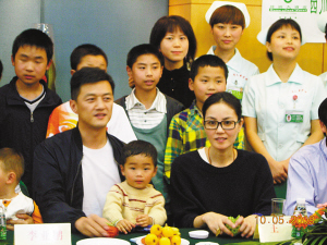 現(xiàn)場(chǎng)的李亞鵬時(shí)時(shí)處處都表現(xiàn)得像個(gè)慈祥的父親,不斷地詢問(wèn)著康復(fù)兒童的情況,由于考慮到患者家庭很困難,他還表示,“無(wú)論如何,我們基金是不會(huì)收家屬制作的錦旗的,希望你們也不要去亂花錢(qián)!辈灰\旗,從災(zāi)區(qū)來(lái)的10歲小女孩王麗卻從衣兜里掏出兩個(gè)手工做的蘋(píng)果,活蹦亂跳地送到李亞鵬夫妻面前,感動(dòng)得二人連忙起身接收?吹蕉魅耸障露Y物,王麗很高興,現(xiàn)場(chǎng)唱起了《一千零一個(gè)愿望》,眼淚都唱出來(lái)了。據(jù)悉,王麗曾在地震中受到了嚴(yán)重的腦外傷,雖然經(jīng)過(guò)醫(yī)治,但現(xiàn)在還有一只耳朵失聰。