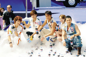 烈日炎炎阻擋不了粉絲的腳步,其中SJ-M的粉絲最為活躍,在他們振聾發(fā)聵的尖叫聲中,09年“百事”形象代言人古天樂、羅志祥、蔡依林、李俊基、黃曉明、Super junior-m以載歌載舞回應粉絲熱情。