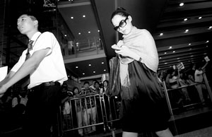昨天下午2點(diǎn)多,記者在航站樓等待中國游泳隊(duì)回國時,發(fā)現(xiàn)了一位星味十足的女子走出國際出口。