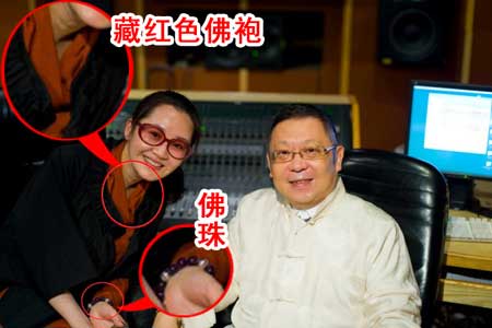 據(jù)悉,近年來,半隱退的許晴一直和文化大師李居明全心研究大唐宮廷佛樂,且經(jīng)過五年的搜集整理,通過運用過電腦軟件模擬了這些樂器的演奏,終于將失傳1200多年的唐朝宮廷佛樂修復(fù)并制作成專輯《唐密傳說》,許晴還在該專輯中一展歌喉“獻(xiàn)聲”。可就是在這張許晴與老師李居明在錄音棚照片,引起了媒體的好奇,從照片發(fā)現(xiàn)許晴身著佛門士服手帶佛珠,因為有媒體爆出許晴實際已經(jīng)出嫁皈依佛門。