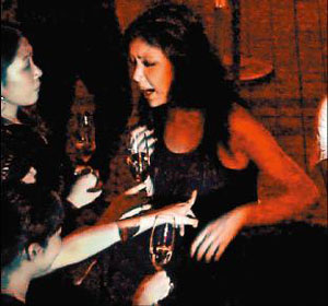 最新香港某雜志報(bào)道,樂(lè)基兒當(dāng)晚一身黑色皮衣裝扮相當(dāng)引人注意,她一到派對(duì)現(xiàn)場(chǎng)馬上褪下外衣,僅著黑色背心,不停與朋友打招呼合照。隨后她走到二樓VIP區(qū)后,便躲在暗處和友人喝香檳;不久她又回到樓下,因?yàn)楹攘瞬簧傧銠壎@得有些醉意,竟開(kāi)始對(duì)現(xiàn)場(chǎng)男女賓客又摟又抱,碰到女友人,還大膽嘴對(duì)嘴親吻;至于男友人,則是跨坐到對(duì)方身上,行徑大膽,完全忘了“人妻”的身分。