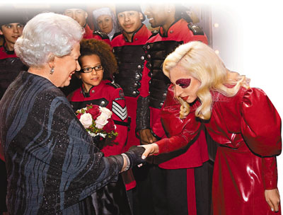 中新網(wǎng)12月9日電 一向衣著打扮出位的Lady GaGa,昨日參與英國皇家大匯演總彩排時收起奇裝異服,以鮮紅的衣著和妝容亮相。與前來捧場的英女王握手時,Lady GaGa受寵若驚,態(tài)度卑躬屈膝。