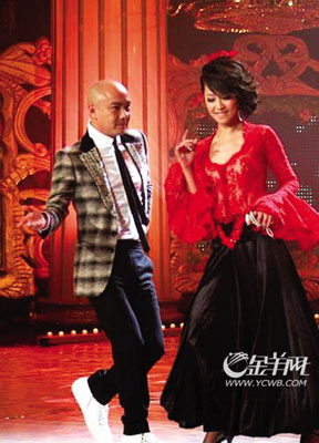 隨后,主持人曹可凡提出讓他們夫妻共舞一曲,兩人尷尬一笑后很配合地扭起了國(guó)標(biāo)舞步。張衛(wèi)健舞技不精,幾個(gè)回合后只好作罷,曹可凡笑稱(chēng):“你可以來(lái)舞林墊底了!”觀(guān)眾要求兩人重演求婚情景:“來(lái)一段跪地求婚吧!”對(duì)此,張衛(wèi)健卻玩起太極:“跪過(guò)了,今天就不跪了!弊詈髢扇藖(lái)了一個(gè)甜蜜的擁抱。