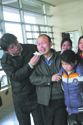 自從醫(yī)院方面向王成記透露李榮珍的病情繼續(xù)惡化后,一向很堅強的王成記仿佛老了10歲。雖然昨日換了一身干凈衣服,可是王成記兩眼無光,還沒走近重癥監(jiān)護室已哭得死去活來。因為重癥監(jiān)護室每次只能進兩個人,所以王成記的女兒、兒子以及親朋好友進去后,王成記才一個人走了進去。剛走到妻子的病床前,這個男人一下跪了下去,握緊著李榮珍的右手,淚流滿面。“你快點醒來,兩個娃娃還等著你,你不要睡了……”王成記的哭聲,讓現(xiàn)場的每個人都感到很難過。盡管媒體昨天報道李榮珍已經(jīng)腦死亡,但王成記表示醫(yī)院并沒有向他出示腦死亡的證明,雖然他也表示妻子生存的幾率很小。王成記與家人商量后,表示將繼續(xù)醫(yī)治妻子,希望能夠出現(xiàn)奇跡。