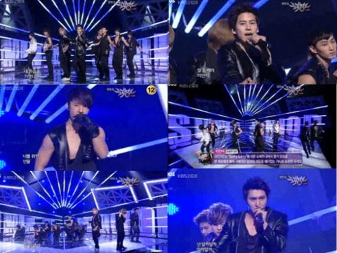據(jù)《朝鮮日?qǐng)?bào)》消息,Super Junior在5月21日播出的韓國(guó)KBS二臺(tái)音樂(lè)節(jié)目《Music Bank》中,憑借第四張正規(guī)專輯主打歌《美人啊》排在了K-排行榜第一位。這距他們本月14日通過(guò)《Music Bank》復(fù)出正好是一周的時(shí)間。