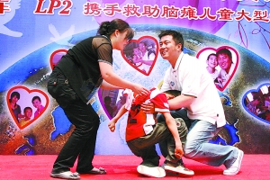忙碌了幾個(gè)小時(shí)之后,現(xiàn)場活動(dòng)正式開始,此時(shí)的滿文軍來不及換好衣服,就用歌聲表達(dá)了自己的愛心愿望。雖然現(xiàn)場音響條件不能令人滿意,但是他的一首愛心歌曲《愛唱給你聽》還是贏得了觀眾和媒體的掌聲一片,在大家的歡呼中,志愿者代表上臺宣讀倡議書,并宣布“365腦癱孤兒愛心基金”啟動(dòng)儀式開始。一個(gè)令滿文軍意想不到的事情發(fā)生了,兒助會吳建英總干事在現(xiàn)場重新將滿文軍去年失去的榮譽(yù)——“腦癱康復(fù)項(xiàng)目”愛心公益大使的榮譽(yù)證書頒給了滿文軍。面對重新獲得的榮譽(yù),滿文軍兩眼熱淚盈眶,認(rèn)真地接過證書!案兄x兒助會對我的信任,我會在日后加倍努力工作,為腦癱兒童的康復(fù)作出我能盡的一份心力!