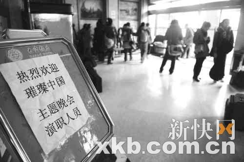 央視少兒頻道表示,他們從未與該組委會有過合作,更談不上播出其節(jié)目。被忽悠上“央視少兒春晚”的三百余名孩子只得在各領(lǐng)隊老師的帶領(lǐng)下黯然離開。圖為某個代表隊的幾十名兒童帶著沮喪在賓館大堂等待回家。 (新快報)