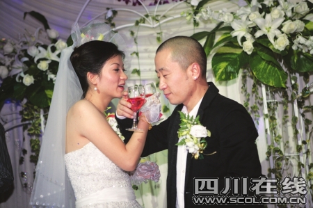 “我今天來主婚,是對(duì)李保田神往已久。李彧作為大明星李保田的兒子,偏偏來到四川找媳婦,找到了咱們南充姑娘陳燕琳,真是千里姻緣一線牽,這就是緣分!”昨天中午12時(shí),南充東方花園賓館熱鬧非凡,著名影星李保田的兒子李彧和22歲的陳燕琳的盛大婚禮在這里舉行,近些年來極少拋頭露面的著名散打評(píng)書藝術(shù)家李伯清高調(diào)亮相,為新郎新娘主婚。李保田因拍戲沒有到場(chǎng),陳燕琳的父母以及從北京遠(yuǎn)道而來的李彧的媽媽、妹妹參加了婚禮,四川名導(dǎo)陳福黔與廖健、叮當(dāng)、林曉冬、熊藝彬等《王保長新篇》劇組等10多位巴蜀笑星也到場(chǎng)慶賀;槎Y結(jié)束后,新娘陳燕琳接受本報(bào)記者在現(xiàn)場(chǎng)的采訪,她聲稱,絕不會(huì)靠明星爸爸李保田去混娛樂圈。