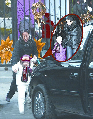 近日,記者來到位于INTEL大廈的章子男居所附近,恰巧趕上章子怡之前使用的那輛黑色道奇駛出大廈,記者便跟了上去。該車最終來到位于望京的某小學(xué)門口,而后一中年女子迅速下車,站在門口開始向校園內(nèi)觀望。沒過多久,一個(gè)穿著一襲白衣的小女孩向中年女子跑了過來,該女孩就是章子男的女兒。中年女子未作停留,迅速將女孩領(lǐng)到了車內(nèi),隨后一溜煙離開。