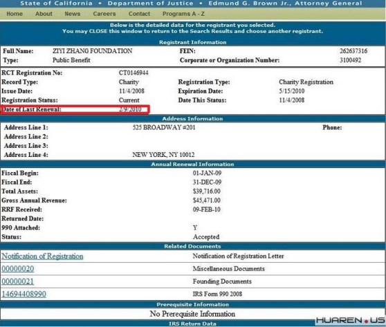 五:章子怡解釋說,基金會(huì)是在戛納籌款前兩天在美國(guó)加州注冊(cè)的,并沒有網(wǎng)友指控的“先籌款,后注冊(cè)”。網(wǎng)友發(fā)現(xiàn)的紐約地址僅是一個(gè)郵寄地址,是為聯(lián)絡(luò)方便補(bǔ)加的。基金會(huì)從未失效或過期,每一筆款項(xiàng)均直接進(jìn)入基金會(huì)在美國(guó)銀行開戶的活期帳號(hào),從未取過一分錢,連注冊(cè)費(fèi)等開支均由她個(gè)人支付。