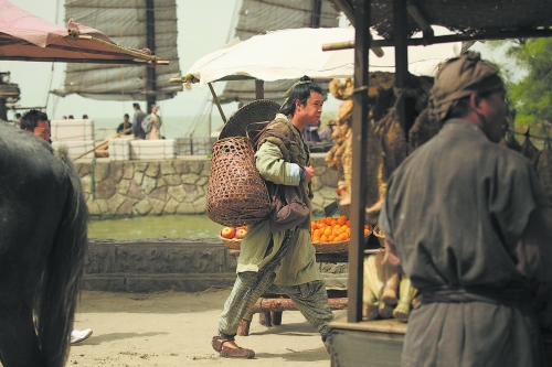 小沈陽的第一場重頭戲是他所扮演的小鞋匠在碼頭上巧遇一位白胡子老翁,受其一番指點(diǎn)和教導(dǎo),這位老翁也是江湖一位武俠高手,之后和趙本山所扮演的河盜一起把武功秘籍傳授給小沈陽。這場戲選擇在無錫影視基地的太湖碼頭拍攝,碼頭邊?恐鴶(shù)艘巨大的帆船,小沈陽進(jìn)入狀態(tài)非?欤@場戲拍攝得也相當(dāng)順利,連在旁觀看的趙本山也忍不住面帶微笑。