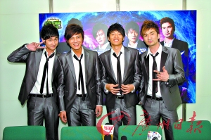 日前曾做客《大洋星閃亮》的國內(nèi)首支男模新聲——風(fēng)云組合,5月18日晚又帶著新專輯《風(fēng)云》參加了廣東電臺(tái)音樂之聲為其舉行的歌迷會(huì),現(xiàn)場(chǎng)演繹了《你愛我嗎》、《TOP STAR》等多首不同風(fēng)格的歌曲,展示了自己T臺(tái)以外的舞臺(tái)魅力。
