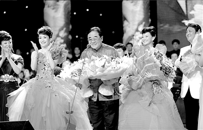 昨晚,金鐵霖的30多位學(xué)生輪流獻(xiàn)唱。呂繼宏的《咱老百姓》、劉斌的《當(dāng)兵的人》、閻維文的《小白楊》、張也的《走進(jìn)新時(shí)代》、董文華的《今天是你的生日,中國(guó)》等,都有極高的人氣。吳碧霞演唱的歌劇《康蒂德》選段《紙醉金迷》是演出的一大亮點(diǎn),除了聲音極富穿透力,吳碧霞在臺(tái)上的表演非常出彩,將角色哭與笑、苦與樂(lè)的矛盾表現(xiàn)得淋漓盡致。壓軸出場(chǎng)的宋祖英演唱了《茉莉花》和《愛(ài)我中華》。記者許青紅