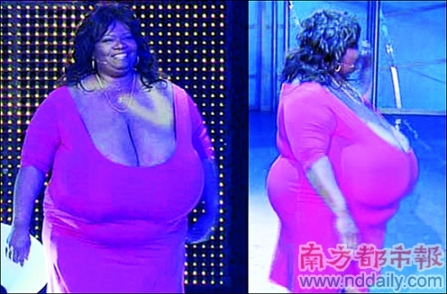 意大利一檔電視節(jié)目日前舉行了“全球最大胸圍女人”的比賽。美國30歲的女子諾瑪·斯蒂斯,以67英寸的傲人胸圍,連續(xù)10年勇奪“世界最大天然胸部”這一頭銜,她的一對乳房重量高達(dá)18公斤,創(chuàng)下吉尼斯紀(jì)錄。