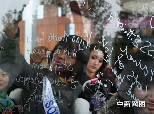 中新網(wǎng)成都11月19日電 (李鵬程) 19日下午,隨著三輛滿載各國(guó)選美小姐的大巴駛?cè)氪ㄍ秶?guó)際酒店的大門,參加第49屆國(guó)際小姐世界大會(huì)總決賽的全部參賽選手已抵達(dá)成都。雖然天氣仍舊寒冷,但是佳麗們的精神面貌都極佳,對(duì)于第一次來(lái)到成都,她們顯得很興奮。主辦方隨后進(jìn)行簡(jiǎn)短而隆重的歡迎儀式,由迎賓志愿者向各國(guó)小姐贈(zèng)送了代表成都本地特色的熊貓玩偶。