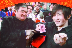 獲得語言類一等獎的本山大叔在元宵晚會上依然是只露面不表演。去年元宵晚會上,小沈陽一人登臺獨唱《大!罚粌H現(xiàn)場唱得趙本山淚水漣漣,也讓大家對師徒二人之間的情誼留下深刻印象。此前有消息稱今年元宵晚會小沈陽和王小利將表演二人轉(zhuǎn)絕活,但最終小沈陽、王小利及趙本山首位歌手徒弟湯潮合唱了一首歌曲《美了美了》,以此“慶!钡锚勚蟮暮眯那。